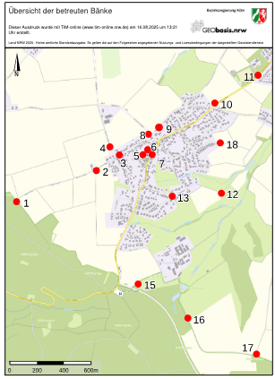 Zur besseren Übersicht existiert eine Karte, auf der alle Standort der Bänke eingetragen sind.